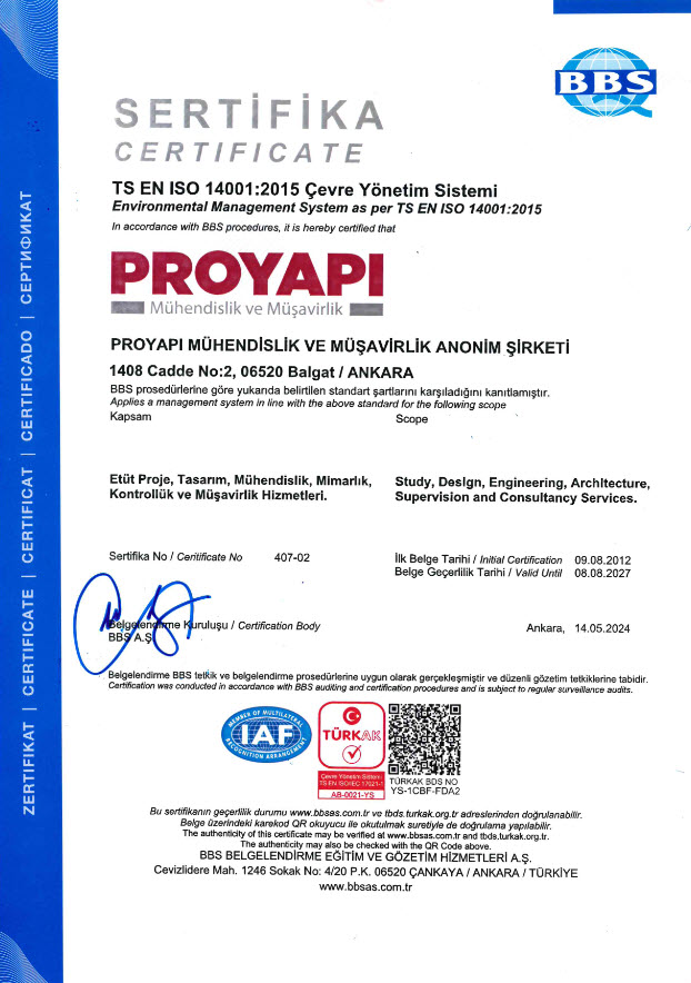 С решениями, которые она предлагает, и успешно завершенными проектами в области автомагистралей, дорог, железных дорог, легкорельсовых систем, интеллектуальных транспортных систем, электромеханических проектов, плотин и водных сооружений, геологических исследований и геотехнических решений, морских и прибрежных проектов, надстройки и других инфраструктурных областей, PROYAPI продемонстрировала свою приверженность принципам устойчивого развития с помощью экологически чистых и инновационных подходов, а также сильной технической базы.